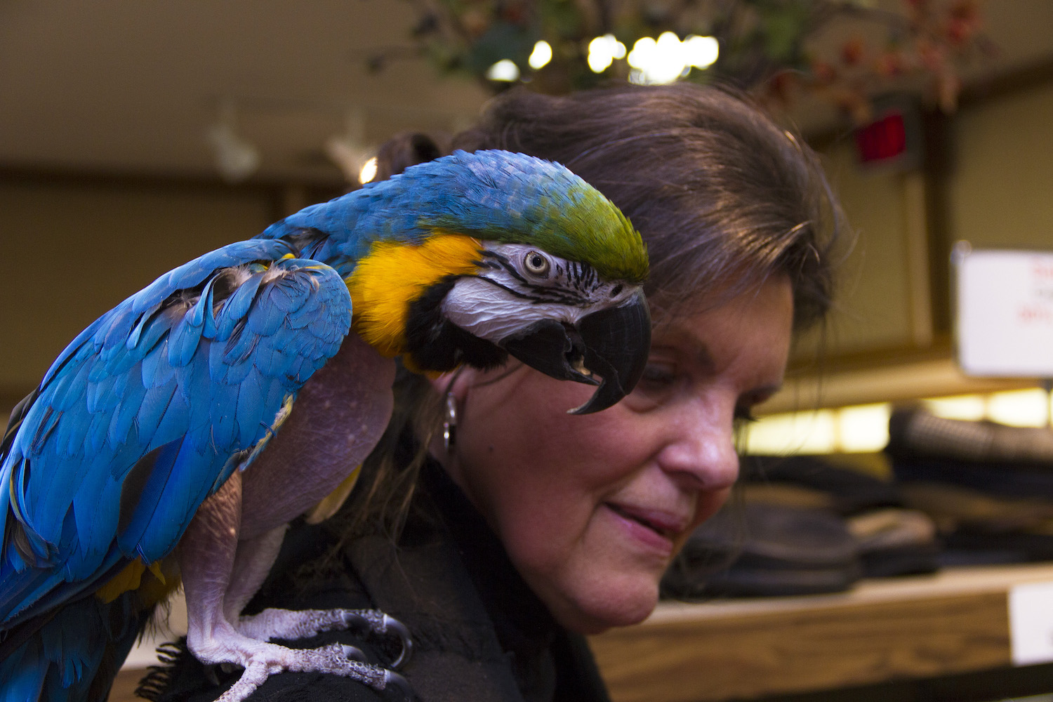 Our men’s and women’s clothing lines and tuxedo rentals are the stars behind Libin’s success, but it’s Roxie the Parrot who steals the show every time with our customers. Roxie, a blue-gold macaw, was born in 1972 and has been the store greeter since 1996. Roxie welcomes guests into our store with more than 40 sayings and places a special emphasis on waving hello and good-bye.